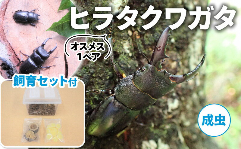 【ふるさと納税】【配送期間は2026年6月下旬~8月上旬に随時配送】ヒラタクワガタ(成虫)オスメス1ペア飼育セット付 生き物 昆虫 男の子 子供 飼育観察 大型 夏休み 自由研究 自然 環境 学習 孫 プレゼント お届け:2026年6月下旬~8月上旬
