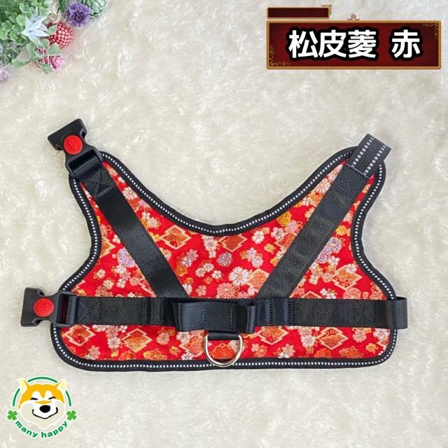 【ふるさと納税】【 京都西陣金襴織 】中型犬ハーネス 華(松皮菱 赤)《柴犬柄コースター付き!》[ 犬用ハーネス 背中に乗せてカチッと留めるだけ 胴輪 抜けにくい お正月 お祝い ふるさと納税 ] | 犬 ハーネス ペット 中型犬 西陣 和柄 ギフト 京都府 京都市