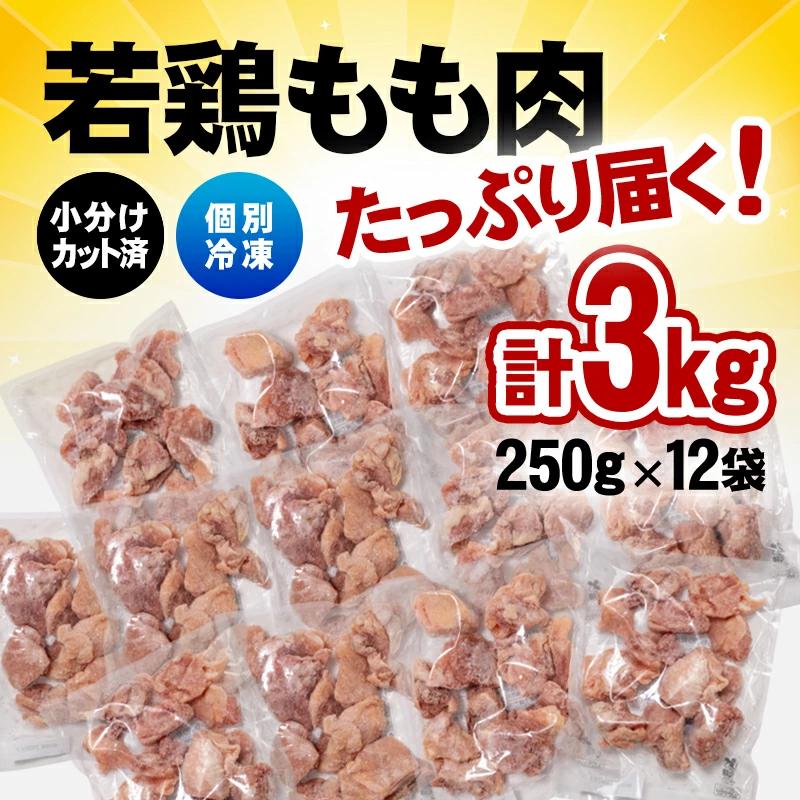 1月発送 バラ凍結!宮崎県産若鶏 鶏肉 もも肉カット 3㎏(250g×12)IQF加工 小分け<1.3-21>鶏 もも身 鶏モモ肉