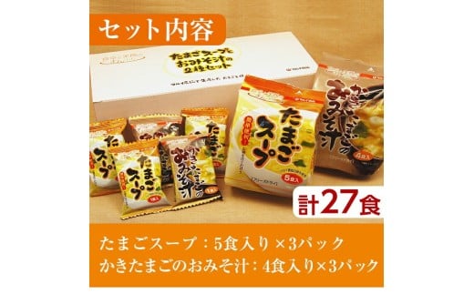 i556-Xm 【クリスマスギフト】たまごスープとかきたまごのおみそ汁2種セット(計27食) 味噌汁 お味噌汁 スープ 卵 たまご フリーズドライ 簡単調理 非常食 常温保存 常温 アウトドア キャンプ お手軽 数量限定 プレゼント クリスマス 【マルイ食品】