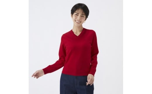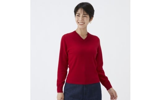 【Lサイズ】日本製 カシミヤ100% レディース Vネック レッド