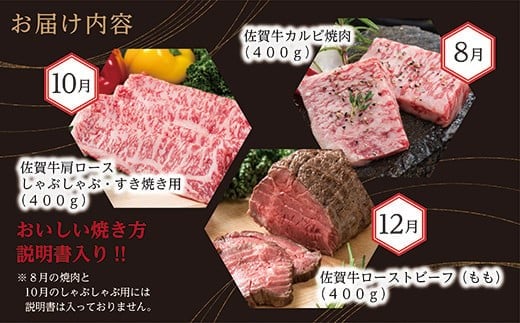 - f-18【肉の定期便 偶数月×6回】極上の佐賀牛 食べ比べ 計2.6kg | サーロイン ステーキ ハンバーグ モモステーキ カルビ焼肉 肩ロース しゃぶしゃぶ すき焼き用 ローストビーフ 定期便 黒毛和牛 国産牛 牛肉 ギフト