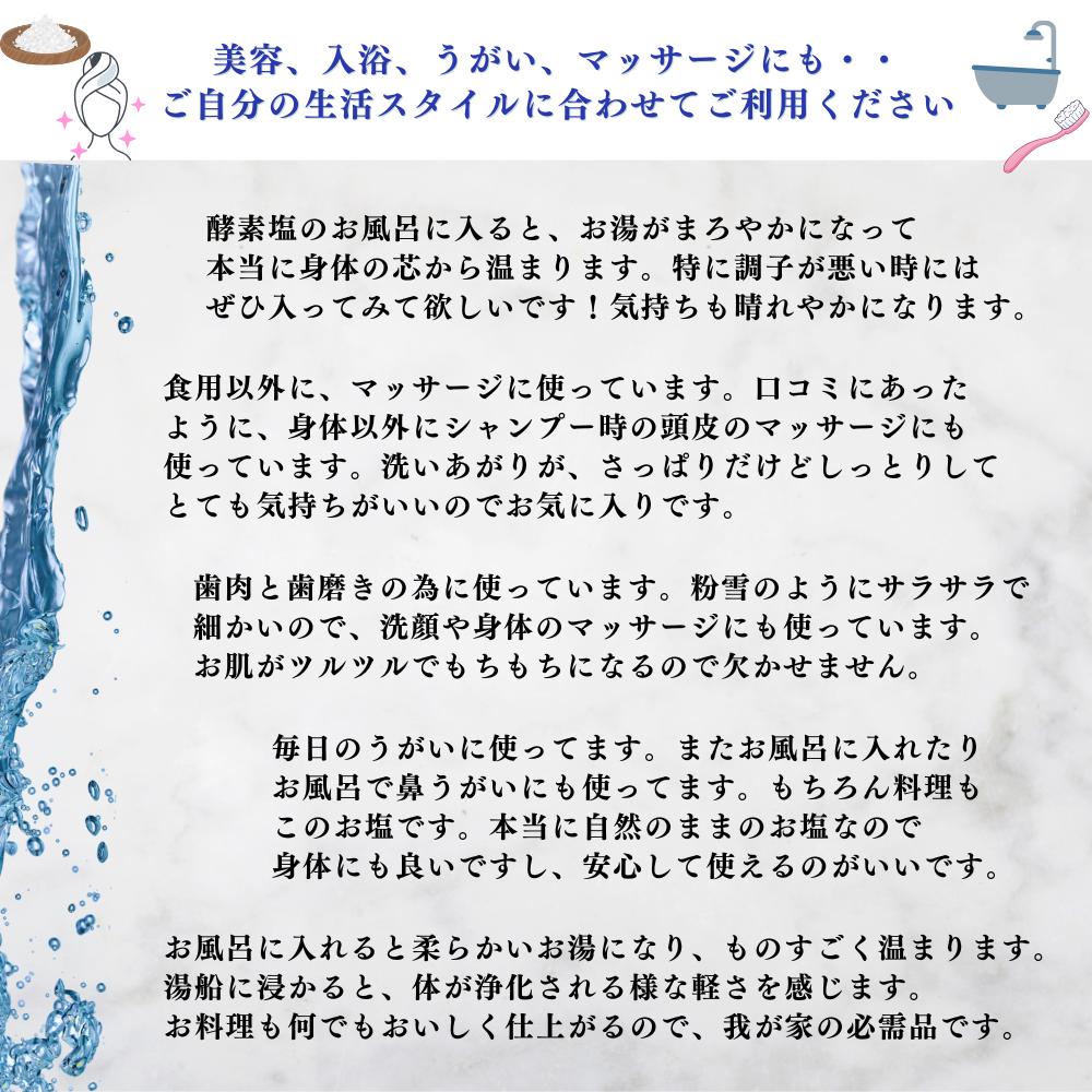 - 極楽塩の普及版 天日干し2年! 火入れしない生の塩 酵素塩 1kg×4袋 北海道産八雲産ニシキ貝の貝殻化石カルシ ウム入り こだわりの製法 塩 食塩 海塩 調味料 ソルト お清め 美容 入浴 うがい 歯磨き