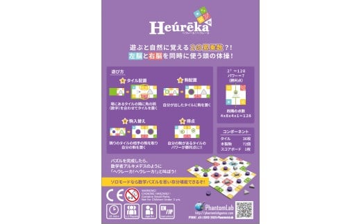 簡単ルール 頭脳系パズル ヘウレーカヘウレーカ | おもちゃ オモチャ 玩具 パズル ゲーム 数学系 パズル 脳トレ 頭の体操 ルール 簡単 子ども 大人 8歳以上 20分 1人から遊べる 家族 友人 繰り返し遊べる 知育 教育 介護 知育パズル 団らん レクリエーション 贈り物 知的 プレゼント ファントムラボゲームズ 調布 東京都