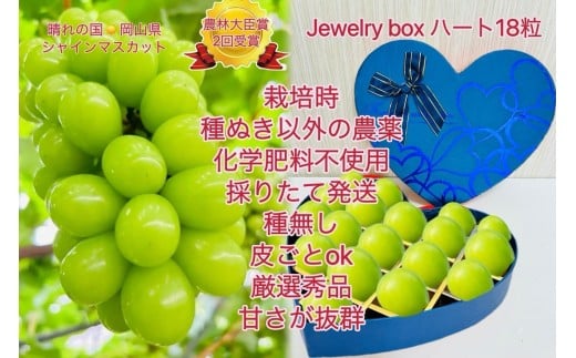 ぶどう 2026年 岡山県産シャインマスカットJewelry box青化粧箱入り18粒贈答用