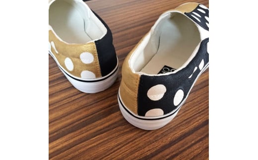 - 手描きスニーカー「bell」22.0cm ゴールド×ブラック 水玉柄【受注制作】