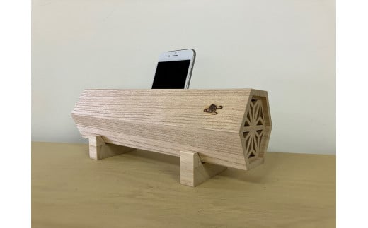 桐エコスピーカー 木地仕上(組子付)《サイズ(外寸):幅280 × 高100 × 奥90 (mm)》桐タンスにも使用している最高級桐材使用 伝統工芸 インテリア 加茂市 鈴木石太郎タンス店