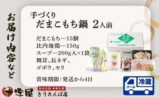 - 手づくりだまこもち鍋 2人前(15個入り) 100P1523 / 本場 きりたんぽ キリタンポ だまこ だまっこ ダマコ ダマッコ 鍋 比内地鶏 ヒナイジドリ ひないじどり 比内鶏 ひないどり ヒナイドリ 郷土 料理 簡単 調理 ブランド肉 野菜 ねぎ 芹 セリ まいたけ ごぼう だし なべ 食材 出汁 取り寄せ 東北 秋田 手軽 ご当地 グルメ 大館 ミールキット 十字屋