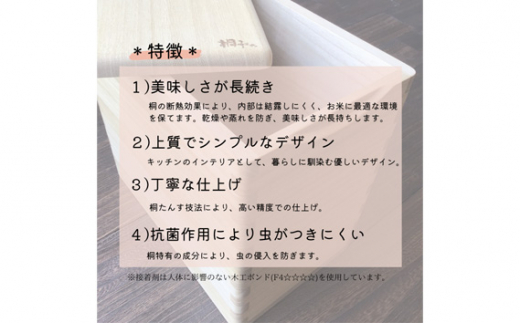 - 桐の米びつ 5kgサイズ 天然無垢の桐 高機密の米びつ《サイズ:約W165 D265 H250mm・重さ:約1.1kg》キッチン用品 加茂市 イシモクコーポレーション