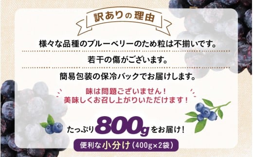 【先行予約】【訳あり】【冷凍】あわらフルーツランドのブルーベリー 400g×2袋(800g)【完熟】 / フルーツ 果物 くだもの 福井県 あわら市 小分け 便利 たっぷり 完熟 ご当地 国産 おすすめ ※2026年8月上旬より順次発送 [aw091-a002]