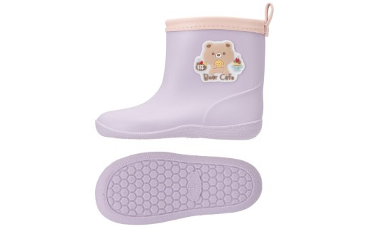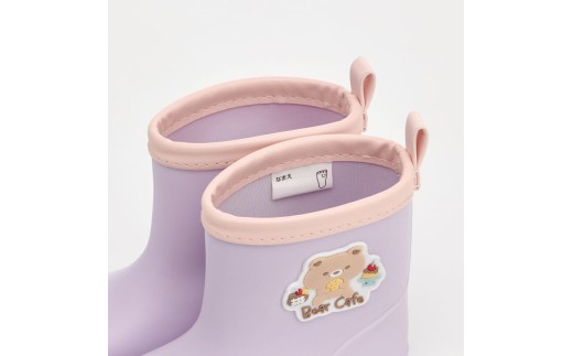 - ワッペン 付き レインブーツ【16cm】 長靴 キッズ 子供 おしゃれ かわいい スケーター skater Bear Cafe クマ くま 紫 パープル【反射テープ付き ながぐつ 雨具 雨の日】 奈良県 奈良市 なら 5-109