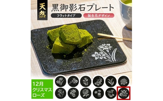 - 天然黒御影石 フラットプレート 1枚 【誕生花彫刻(12月クリスマスローズ)】 SE0280