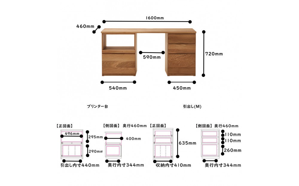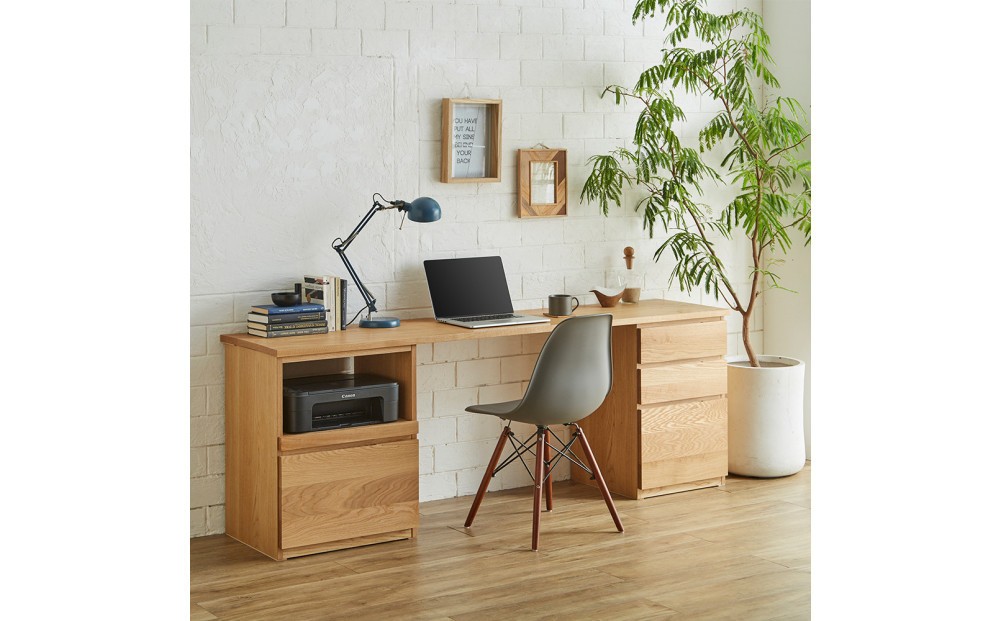 - 【大川家具】無垢材 システムデスク 幅1600mm テーブル パソコンデスク 子供机 勉強机 学習机 書斎デスク HO-HM ホワイトオーク 天然木 モダン 国産 無垢材 高級感【設置付き】
