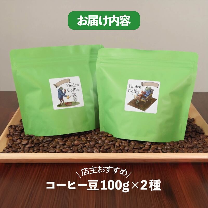 - 自家焙煎珈琲豆 200g(100g×2種) コーヒー 珈琲 選べる 豆 粉 中深煎り 中浅煎り 手軽 自家焙煎 Finder Coffee 新潟県 新潟 新発田市 新発田 finder008P