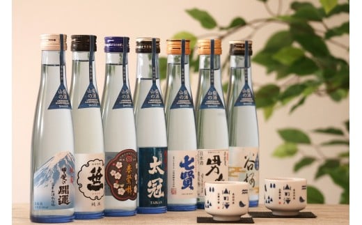 - 名山の水 山の酒 山梨の酒 純米酒飲み比べ7本セット(180ml×7本) 日本酒 飲み比べ 甲斐の開運 笹一 春鶯囀 太冠 七賢 甲斐男山 谷櫻 地酒 お猪口付き お酒 ギフト 山梨 富士吉田