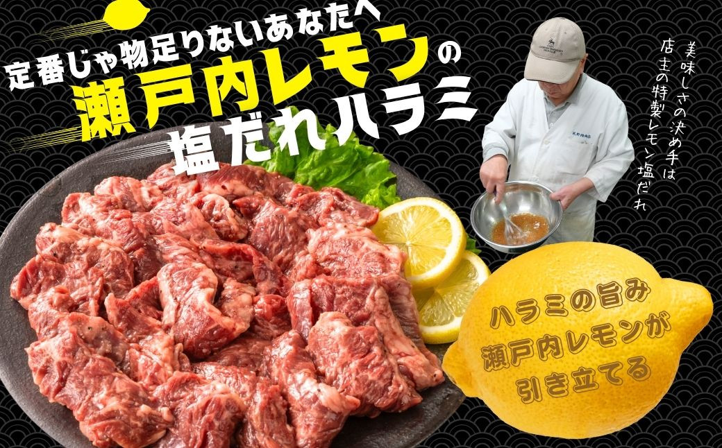 【瀬戸内レモン塩だれ】牛ハラミ 猛(タケ)ハラミ 1.2kg (300g×4パック) 尾野精肉店の牛ハラミ【肉 訳あり 小分け 真空パック 冷凍 牛肉 ハラミ 味付き 焼肉 BBQ 広島県 竹原市】※離島への配送不可
