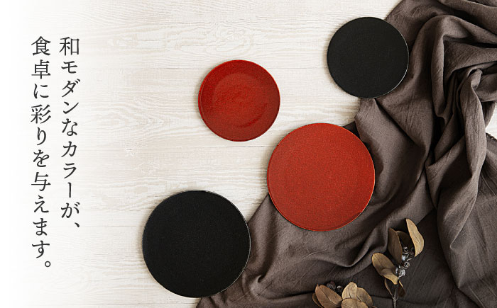 - 【美濃焼】フラットプレート S・L 和モダン 2色4点 セット ブラック×レッド【隆成】食器 プレート プレゼント [MFD009]