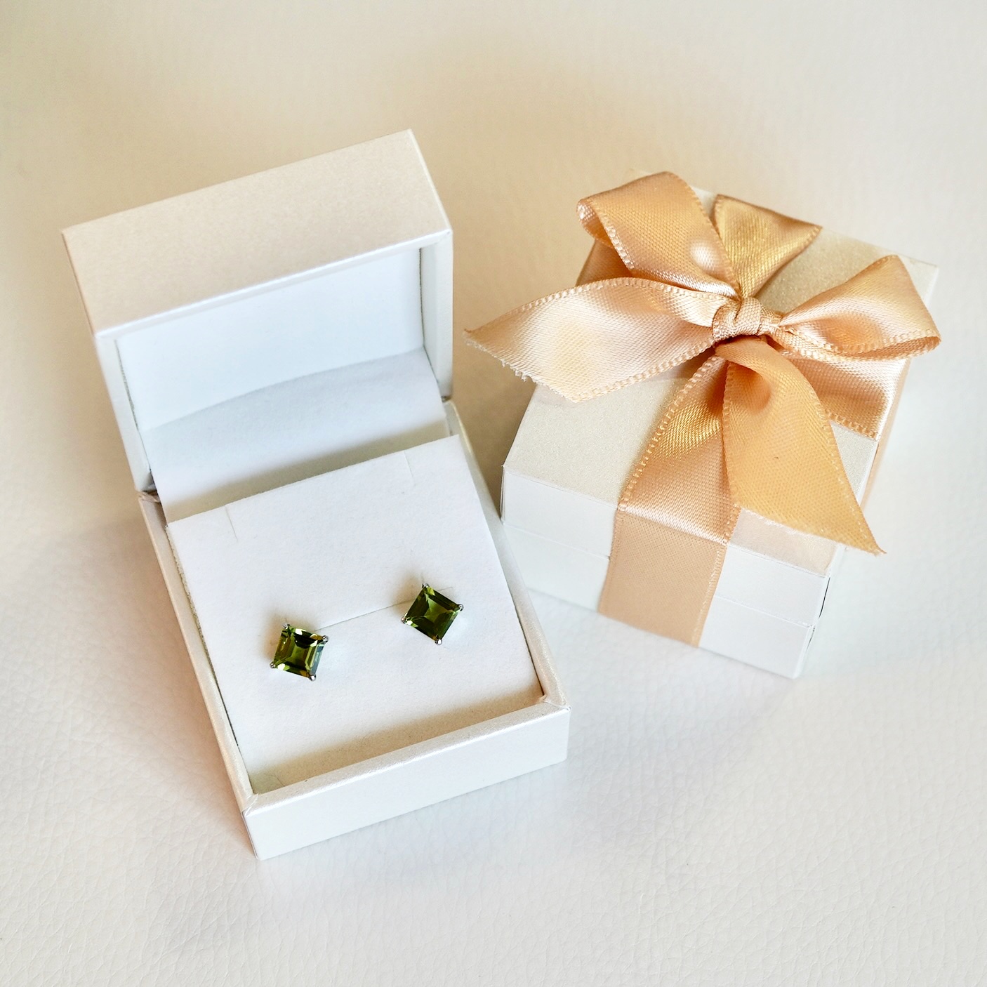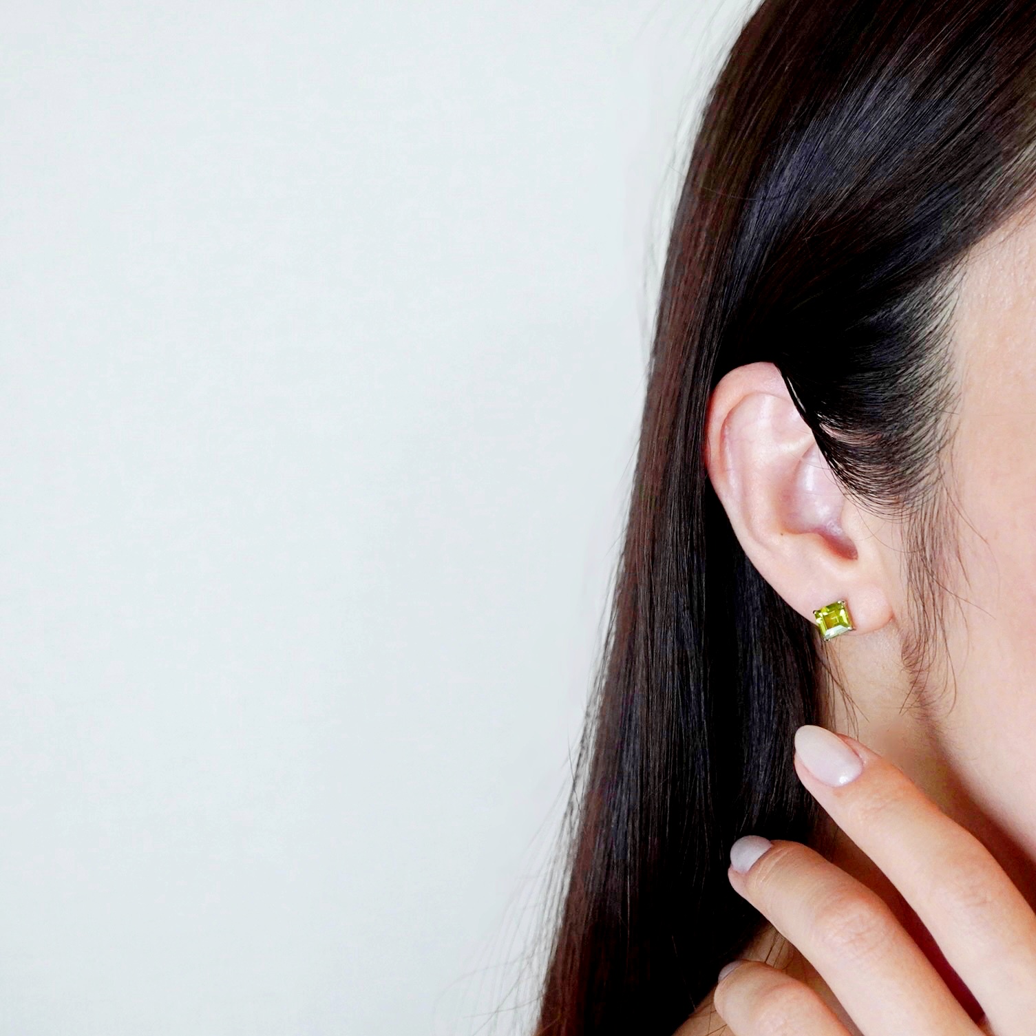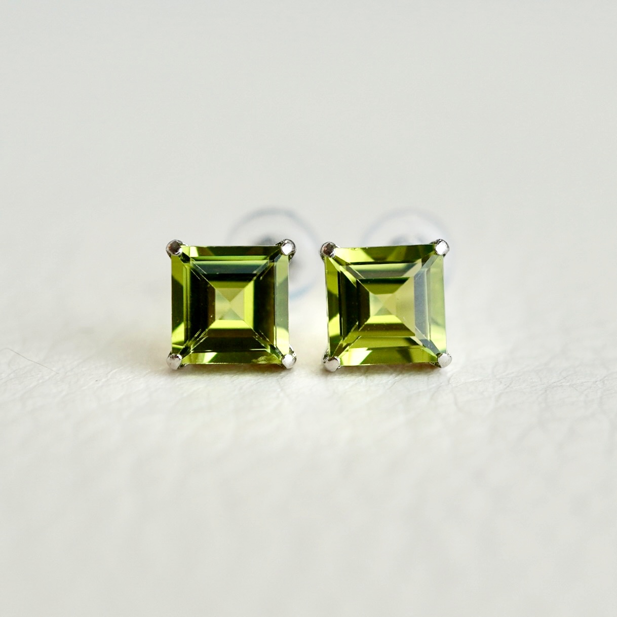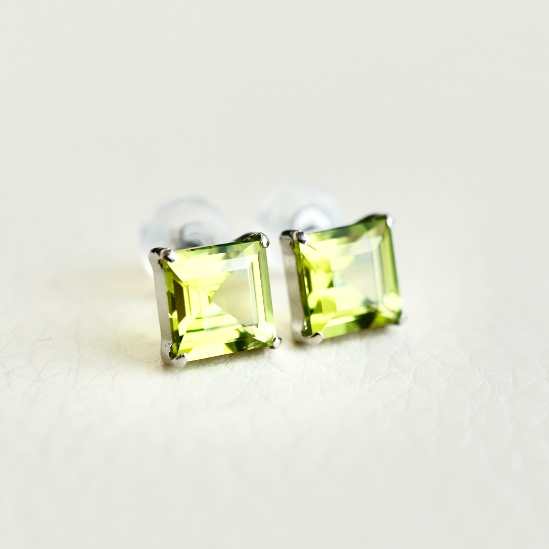 - 【ジュエリー】Pt900 プラチナ ペリドット 一粒石 ピアス スクエアカット 6mm 保証書付 IA-3179