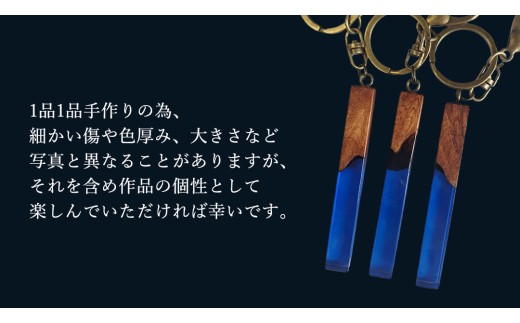 - 花梨 ( カリン ) の木を使用したストレート型レジン キーホルダー 《ディープブルー》 金運 商売繁盛 縁起物 大工 建築家 職人 天然木材 手作り 工芸品 民芸品 ストラップ 雑貨 小物 アクセサリー [CM024sa]