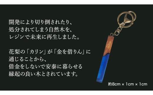花梨 ( カリン ) の木を使用したストレート型レジン キーホルダー 《ディープブルー》 金運 商売繁盛 縁起物 大工 建築家 職人 天然木材 手作り 工芸品 民芸品 ストラップ 雑貨 小物 アクセサリー [CM024sa]