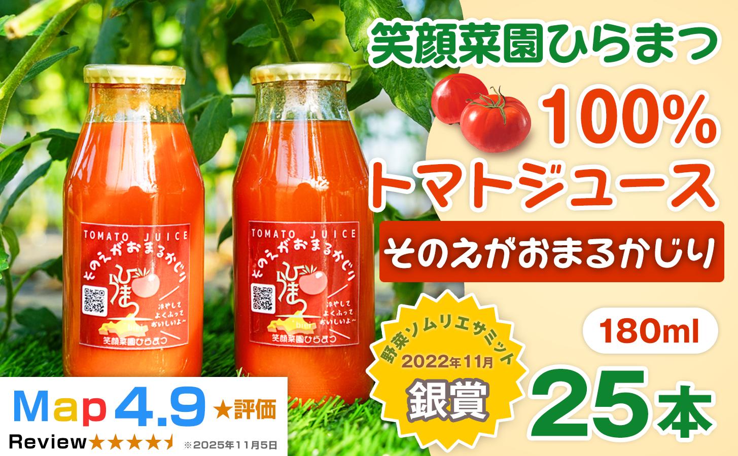 【無塩・ 無加水】毎日飲みたくなる大玉トマト100%ジュース そのえがおまるかじり 180ml×25本| 新鮮野菜 旬の野菜 ヘルシー 健康 高糖度 大容量 リコピン ミネラル 健康 おやつ ギフト 贈り物 北海道 上川郡 [046-04]