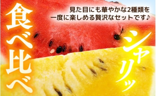- 【先行予約】やまびこ農園の秋の赤と黄の小玉スイカ 食べ比べセット 合計2玉入り (1玉当たり:2kg前後) 【2026年9月中旬以降順次発送予定】 【スイカ 西瓜 すいか 小玉 デザート 果物 くだもの 秋 ジューシー お取り寄せ グルメ 産地直送】 [A-21903]