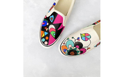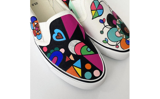- 手描きスニーカー「ジョーヌスリッポン」22.5cm カラフル アシンメトリー【受注制作】