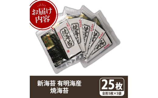 - 新海苔 焼海苔セット(計25枚・全形5枚×5袋) のり ノリ 海苔 焼き海苔 やきのり おにぎり 常温 常温保存 小分け 福岡県 有明海産 有明のり 有明海苔【木村食品】as46-021
