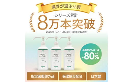 HAND CLEAR+ 1L×12本 / 指定医薬部外品 高濃度 手指消毒用アルコール 消毒アルコール液 高い消毒効果 手指専用 除菌 高い速乾性 素早く乾燥 手荒れを防ぐ 保湿成分配合 国産 日本製 安心 埼玉県 No.483