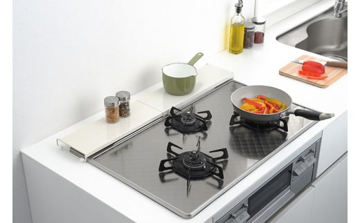 伸縮式コンロ奥カバー&ラック ホワイト《幅42~77.5×奥行14×高さ3.5(cm)》キッチン用品 ラック 棚 収納 4989082777740 加茂市 アーネスト