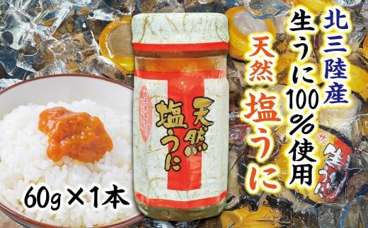 - 【年内発送】 【北三陸産生うに100%使用】天然塩うに 瓶詰 60g 1本 ミョウバン不使用 無添加 雲丹 uni ウニ 冷凍 うに 瓶 年内配送 年内お届け