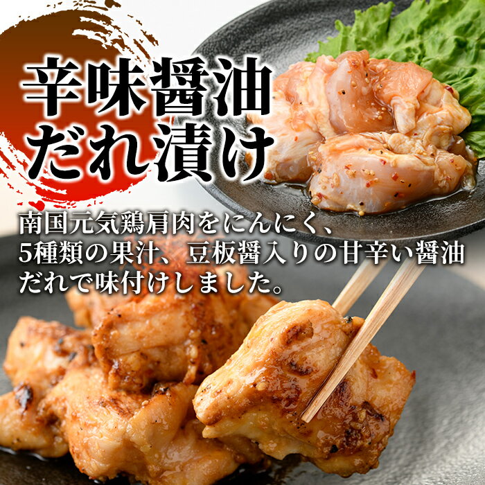 - 【ふるさと納税】南国元気鶏 たれ漬け2種 (各200g×3P・計1.2kg) 鶏肉 タレ漬け 辛味醤油だれ 甘辛だれ 冷凍 おかず お弁当 夕食 簡単調理 国産 お手軽 【マルイ食品】