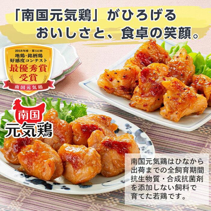 【ふるさと納税】南国元気鶏 たれ漬け2種 (各200g×3P・計1.2kg) 鶏肉 タレ漬け 辛味醤油だれ 甘辛だれ 冷凍 おかず お弁当 夕食 簡単調理 国産 お手軽 【マルイ食品】