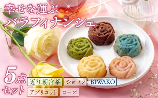 - バラ フィナンシェ 5個入り 幸せを運ぶバラフィナンシェ セット ローズ アプリコット ショコラ 近江朝宮抹茶 BIWAKO 5つ入り 5個セット 焼き菓子 菓子 お菓子 洋菓子 バタフライピー 抹茶 お茶 レモンピール チョコレート クランベリー 贈答 プレゼント 贈り物 ギフト ご褒美 個包装 彦根 滋賀
