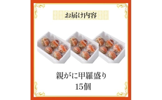 【親がに甲羅盛り 15個セット 冷凍】N108 11月から受付開始!調理不要 解凍のみ 甲羅盛り カニ 親がに 親ガニ ズワイガニ 鳥取産 カニ味噌 内子 外子 蟹身 かにみそ 海鮮 国産 松葉ガニ 生活応援 大人気 期間限定 日本海