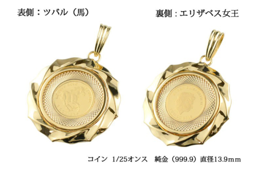 - 純金 コイン ペンダント トップ [シエロ 山梨県 中央市 21470933] 馬 1/25オンス ツバル ホース コイン ペンダント 金貨 24金 Noh25co00