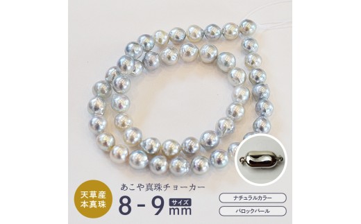 S085-392_あこや真珠 バロックパール 8mm - 9mm ネックレス チョーカー SV925 シルバー925 真珠 シンプル【B:ノーマル シルバー】