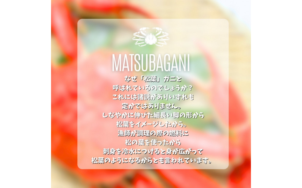- 松葉がに タグ付き(茹で)中サイズ 1枚 312011_FT015