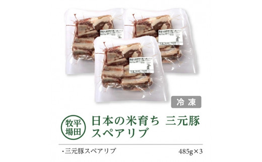 - 豚肉 三元豚 スペアリブ 3パック 485g ブランド豚 豚 骨付き ブロック肉 BBQ グリル ごちそう 食べ応え 満点 小分け カット エサ( 米 お米 国産米 とうもろこし 大豆かす ) 冷凍 煮込み料理 カット済み 便利 平牧 平田牧場 山形 酒田 SA2001