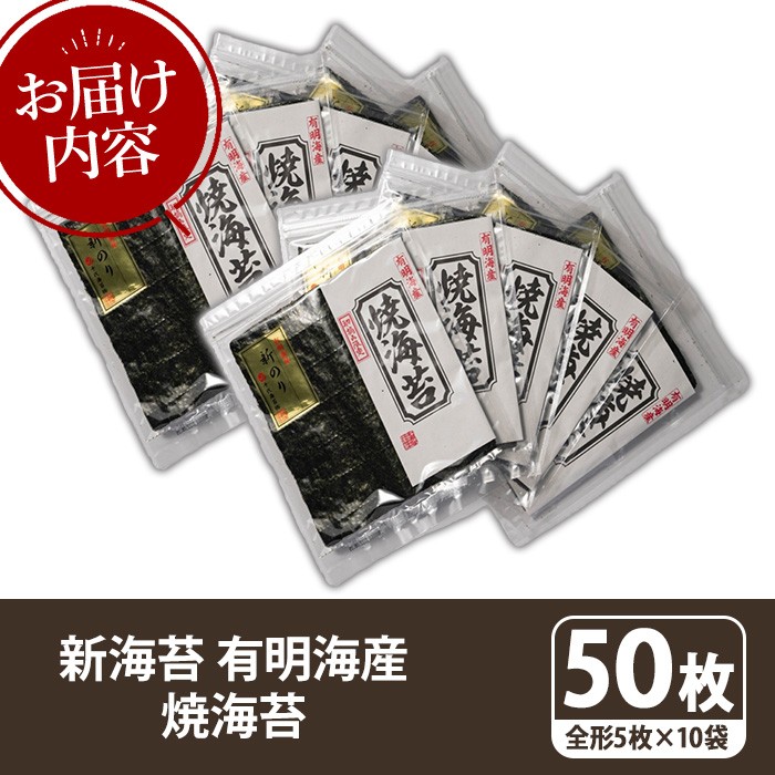 - 新海苔 焼海苔セット(計50枚・全形5枚×10袋) のり ノリ 海苔 焼き海苔 やきのり おにぎり 常温 常温保存 小分け 福岡県 有明海産 有明のり 有明海苔【木村食品】as46-022