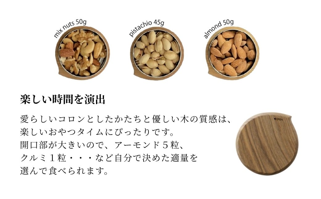 - ナッツケース ストーリオ |おしゃれ 携帯 持ち歩き コンパクト ナッツ ドライフルーツ 木製 無垢材 国産 日本製【0005-0015-01】