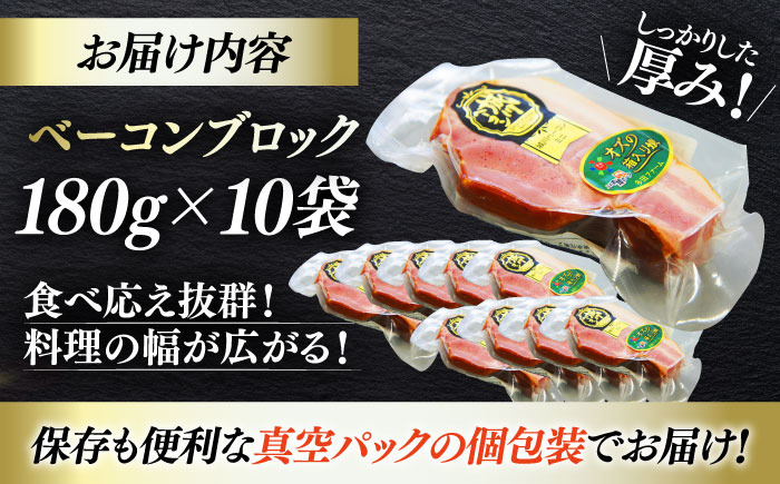 - ベーコンブロック ×10ケ 合計1800g ブランドポーク『オズの箱入り娘』使用!にく 肉 お肉 豚肉 ぶたにく ベーコン ソーセージ ウインナー ウィンナー 焼肉 バーベキュー おかず おつまみ おすすめ 人気 お取り寄せ 送料無料 贈答 ギフト 加工肉 厚切り BBQ パスタ お弁当 料理 アレンジ ジューシー おつまみ 愛媛県大洲市/株式会社オズメッセ [AGAZ013]