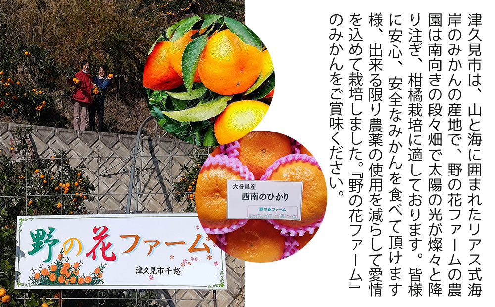 【先行予約・数量限定】野の花ファーム 秀品 西南のひかり 3kg みかん ミカン オレンジ 柑橘類 果物 フルーツ 大分県産 九州産 津久見市 国産
