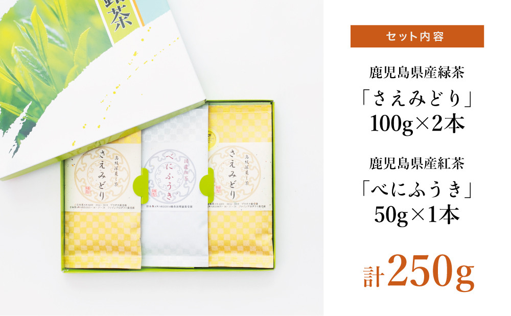 【日本茶AWARD受賞】鹿児島緑茶と紅茶のセット(計250g) 鹿児島県産 かごしま お茶 日本茶 緑茶 紅茶 茶葉 南さつま市 小牧緑峰園