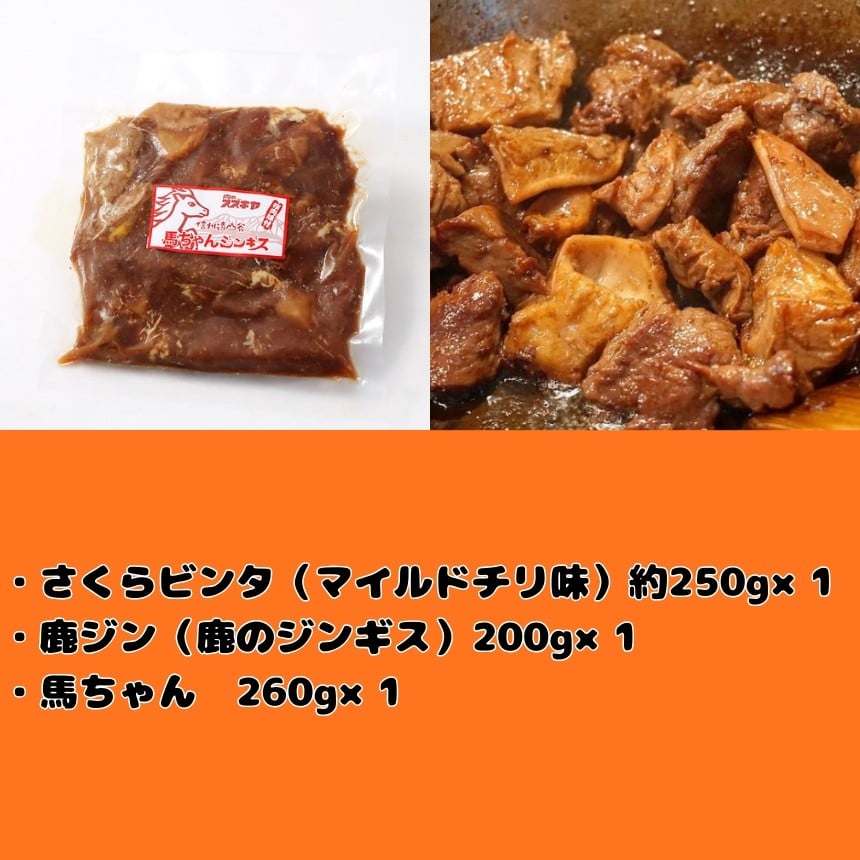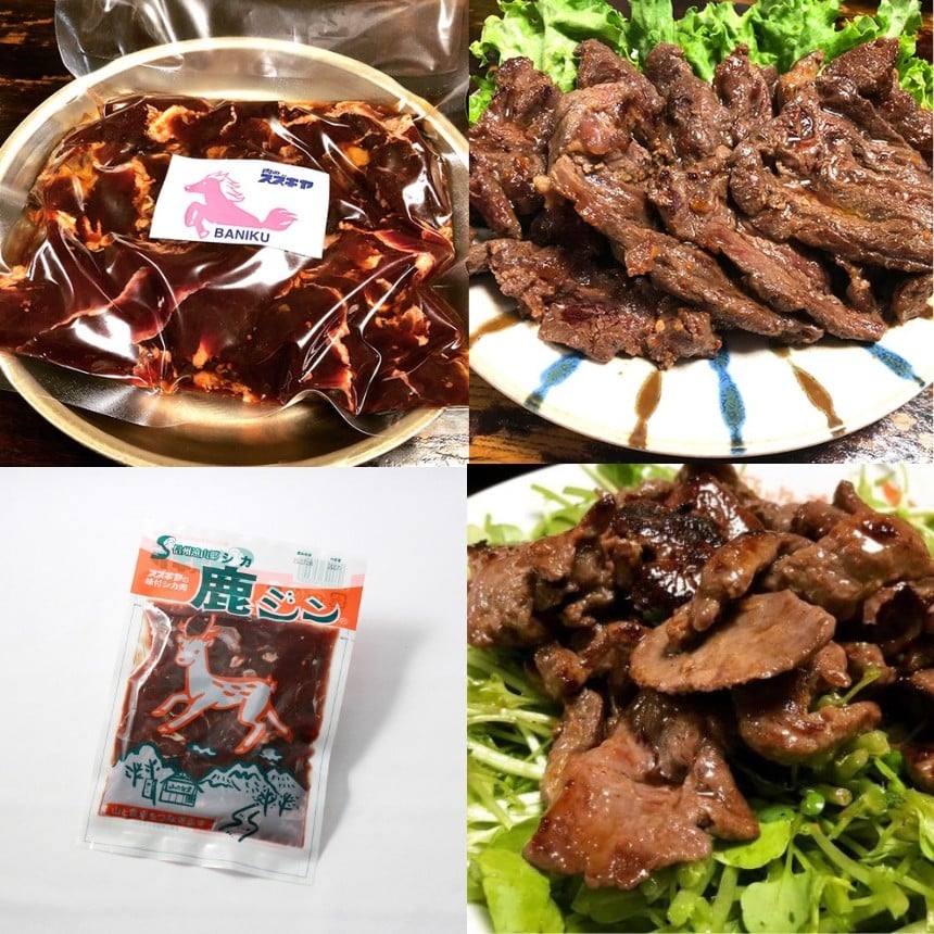- 馬 鹿 焼 セット | ジビエ 肉 にく ジンギス 馬 桜肉 鹿 シカ 味付 味付け肉 簡単 便利 焼肉 炒め物 惣菜 おかず おつまみ セット 食べ比べ 冷凍 長野県 飯田市 信州