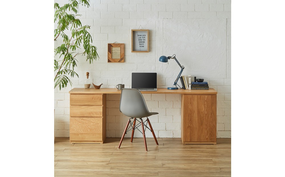 - 【大川家具】無垢材 システムデスク 幅1800mm テーブル パソコンデスク 子供机 勉強机 学習机 書斎デスク HM-TMR ホワイトオーク 天然木 モダン 国産 無垢材 高級感【設置付き】