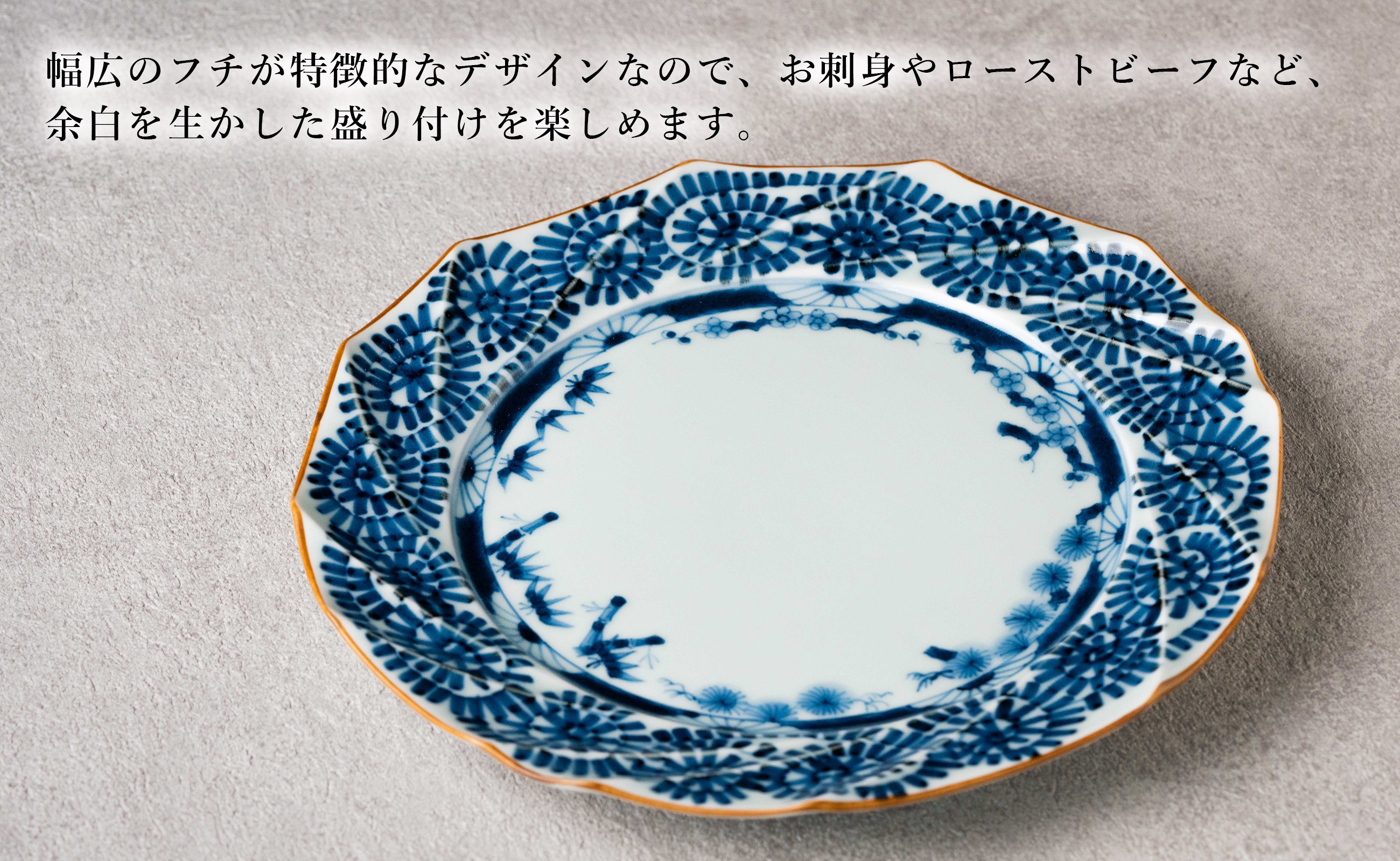 - 【カネアオ】 有田焼 切子 23cm プレート 染付 松竹梅蛸唐草 1枚 宝泉窯