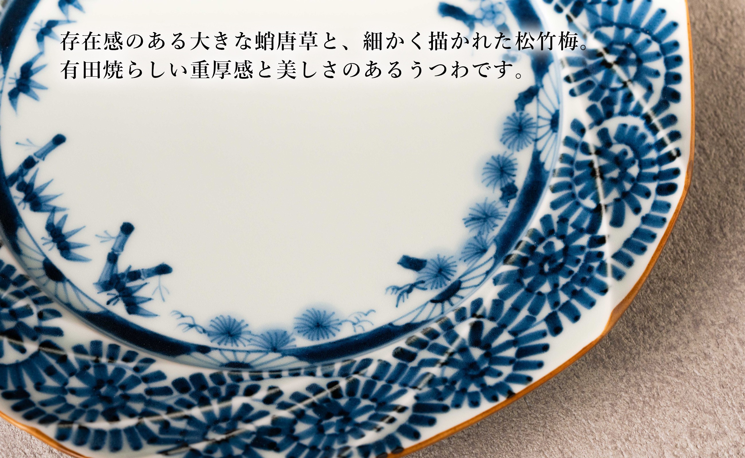 【カネアオ】 有田焼 切子 23cm プレート 染付 松竹梅蛸唐草 1枚 宝泉窯