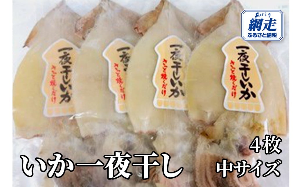 - いか一夜干し 4枚 中サイズ 【 ふるさと納税 人気 おすすめ ランキング いか イカ 一夜干し イカ一夜 いか一夜 干物 羅臼産 おかず オホーツク 北海道 網走市 送料無料 】ABW113