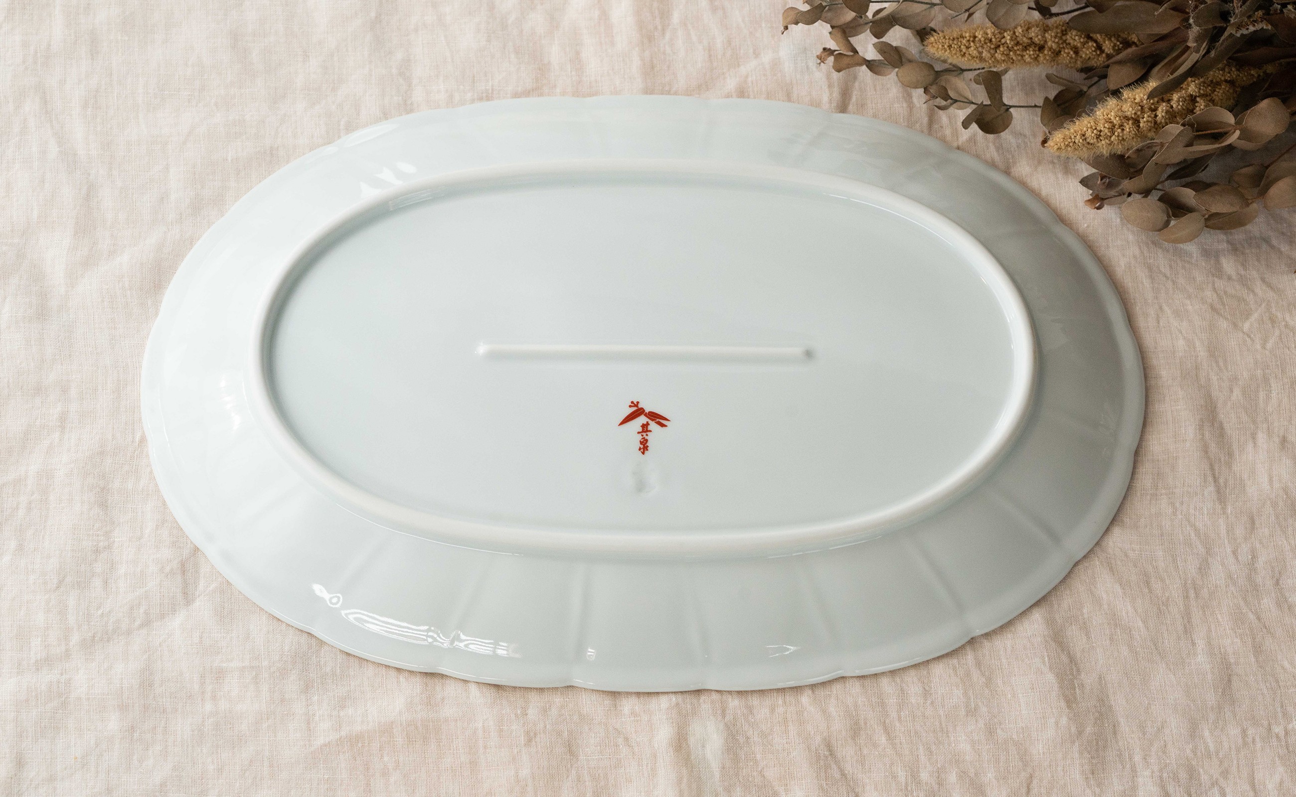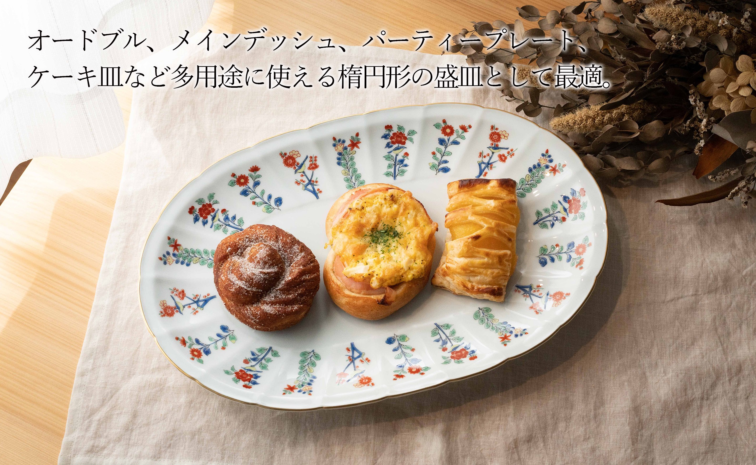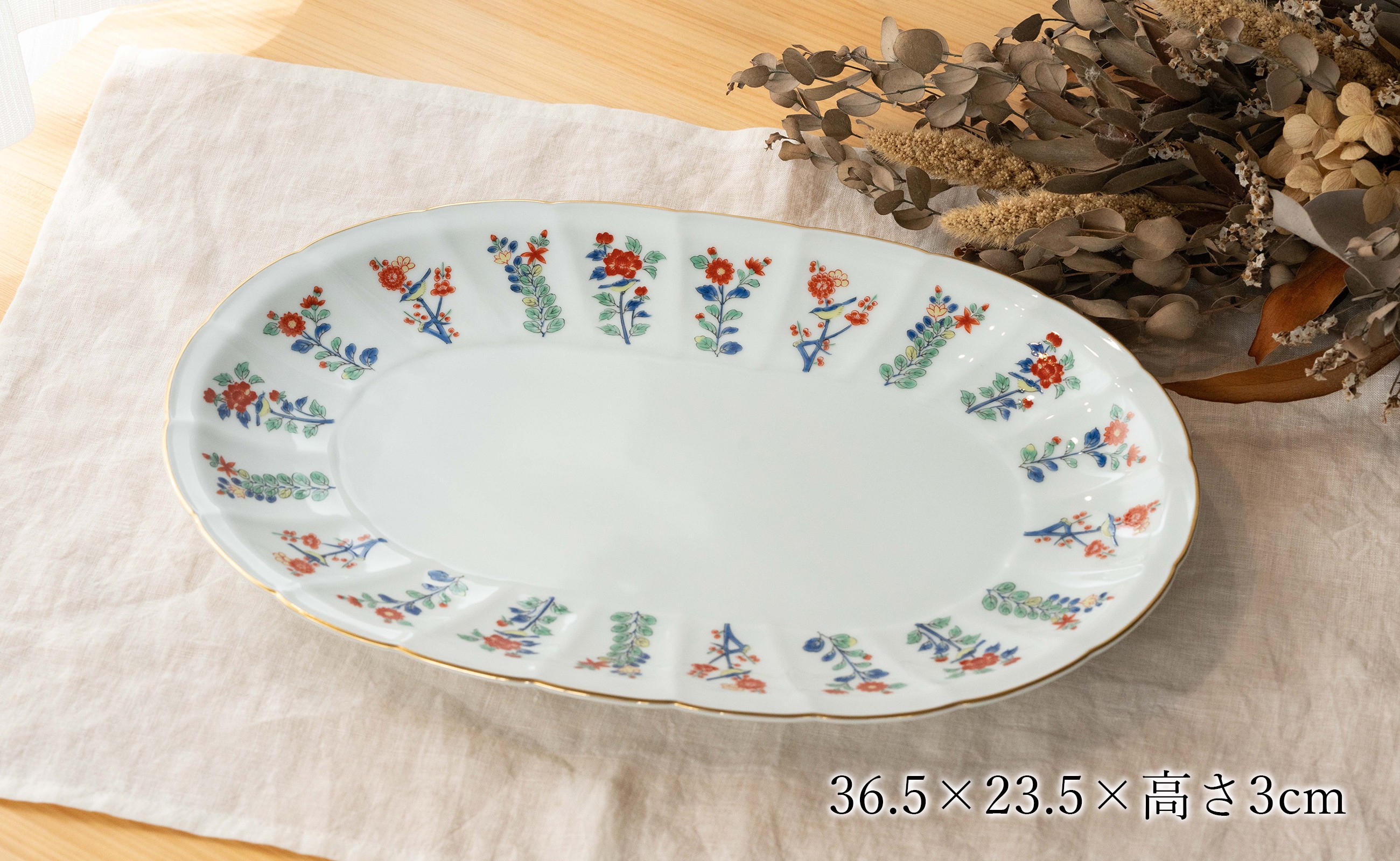 有田焼 〈マイセン写し色絵草花文〉 37cm 楕円皿(プラター)1枚 賞美堂本店